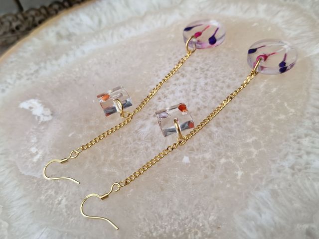 - Résines rondes et carrées avec fleurs séchées multicolore